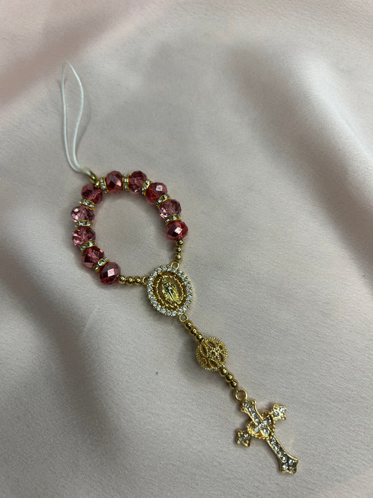 Dizainier doré avec perles rose clair et transparentes, attache pour téléphone amovible